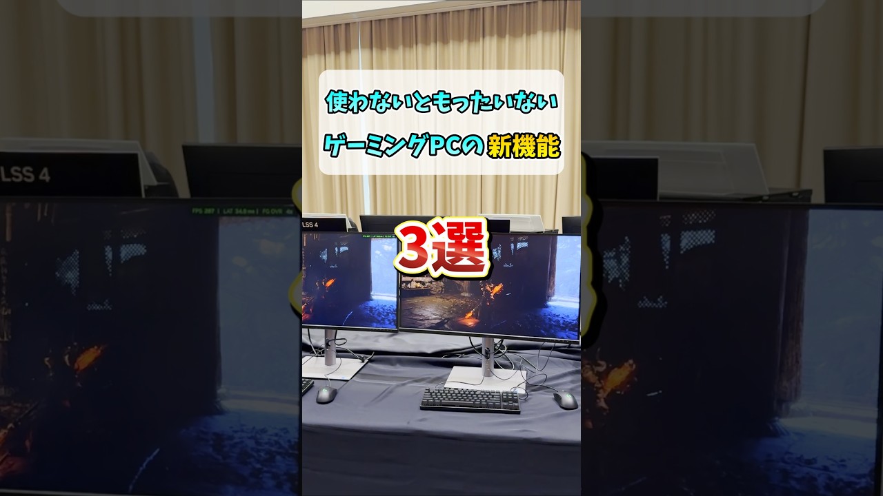 マルチフレーム生成どんどん差しめる枚数が増えてますね。60fpsでしか遊べなかった重たいゲームがおおよそ360fpsで遊べるようになると考えるとすごい技術です。フレーム生成の弱点として遅延が若干増えてしまいますが、NVIDIA Reflexという遅延を減らす技術もあるので、総合的により優れたゲーム体験が可能となっています。
