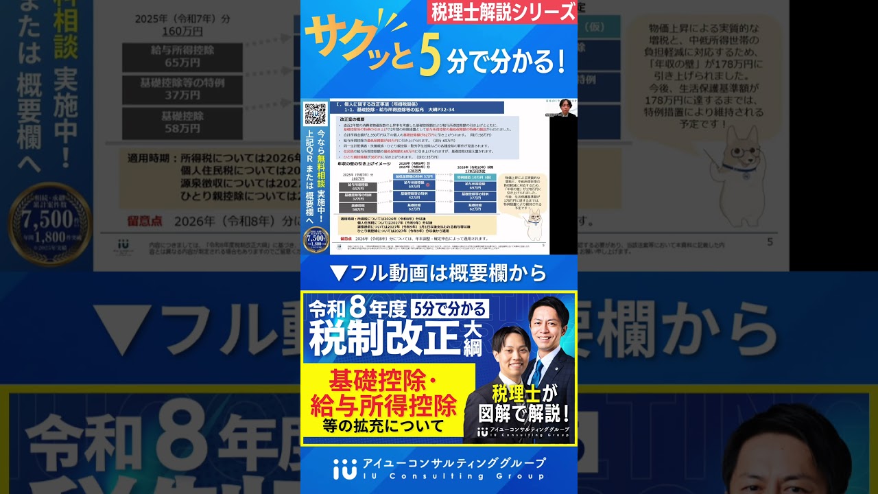 #Shorts #税理士 #税制改正大綱 #令和8年度 #基礎控除 #手取りアップ #年収の壁 #アイユーコンサルティンググループ #経営者 #採用 #資産税 #税理士 #税理士法人 #税制改正 #税制改正大綱 #令和8年度税制改正 #令和8年度税制改正大綱 #税 #税制 #士業 #会計 #税理士事務所 #相続 #事業承継 #税理士試験 #税理士受験生 #ビジネス #保険 #コンサルタント #コンサルティング #税金 #アイユーコンサルティング #年収の壁 #NISA #暗号資産 #仮想通貨 #住宅ローン #相続税 #生前贈与 #節税 #税理士試験 #贈与税 #インボイス #無料 #gptw