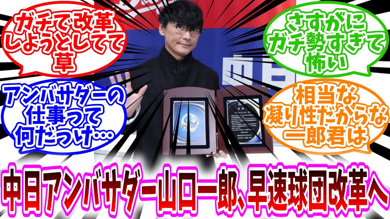 【速報】「中日アンバサダー山口一郎さん、早速球団改革へ」に対する、野球民の反応集/ガチで改革しようとしてて草/さすがにガチ勢すぎて怖い/アンバサダーの仕事って何だっけ…/相当な凝り性だからな一郎君は