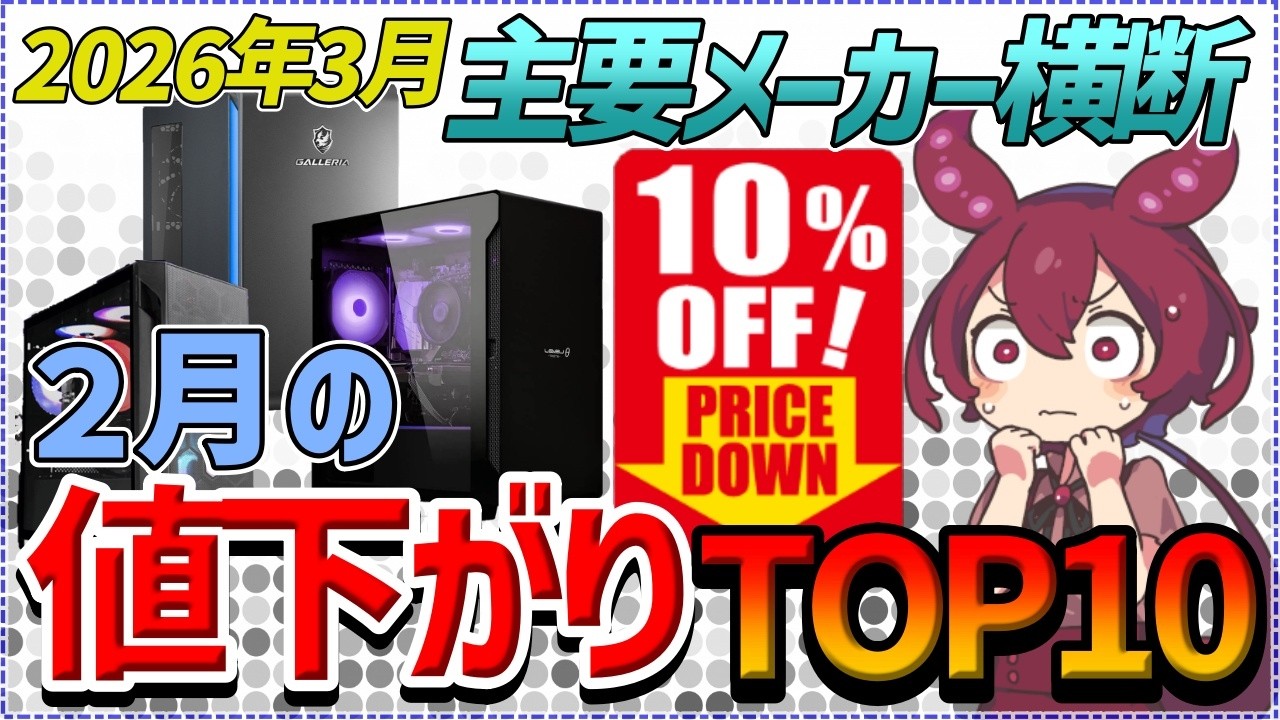今回は、主要メーカー5社を横断し、2月に大きく値下がりしたゲーミングPCの価格変動率トップ10をご紹介します。