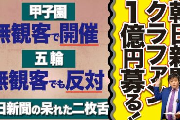 【朝日新聞、甲子園に対するクラウドファンディングで1億円を募る】甲子園は無観客で開催、オリンピックは無観客でも開催反対とする、朝日新聞の呆れた二枚舌(21/08/03)